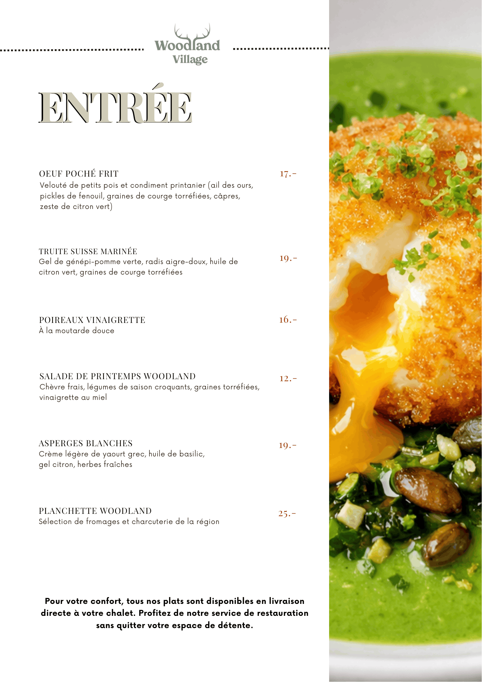 Restaurant sur place et terrasse panoramique avec des spécialités suisses locales dont vous rêvez pour le déjeuner, le dîner, des collations ou des boissons dans un cadre décontracté et convivial (ou livraison au chalet disponible pour nos clients).