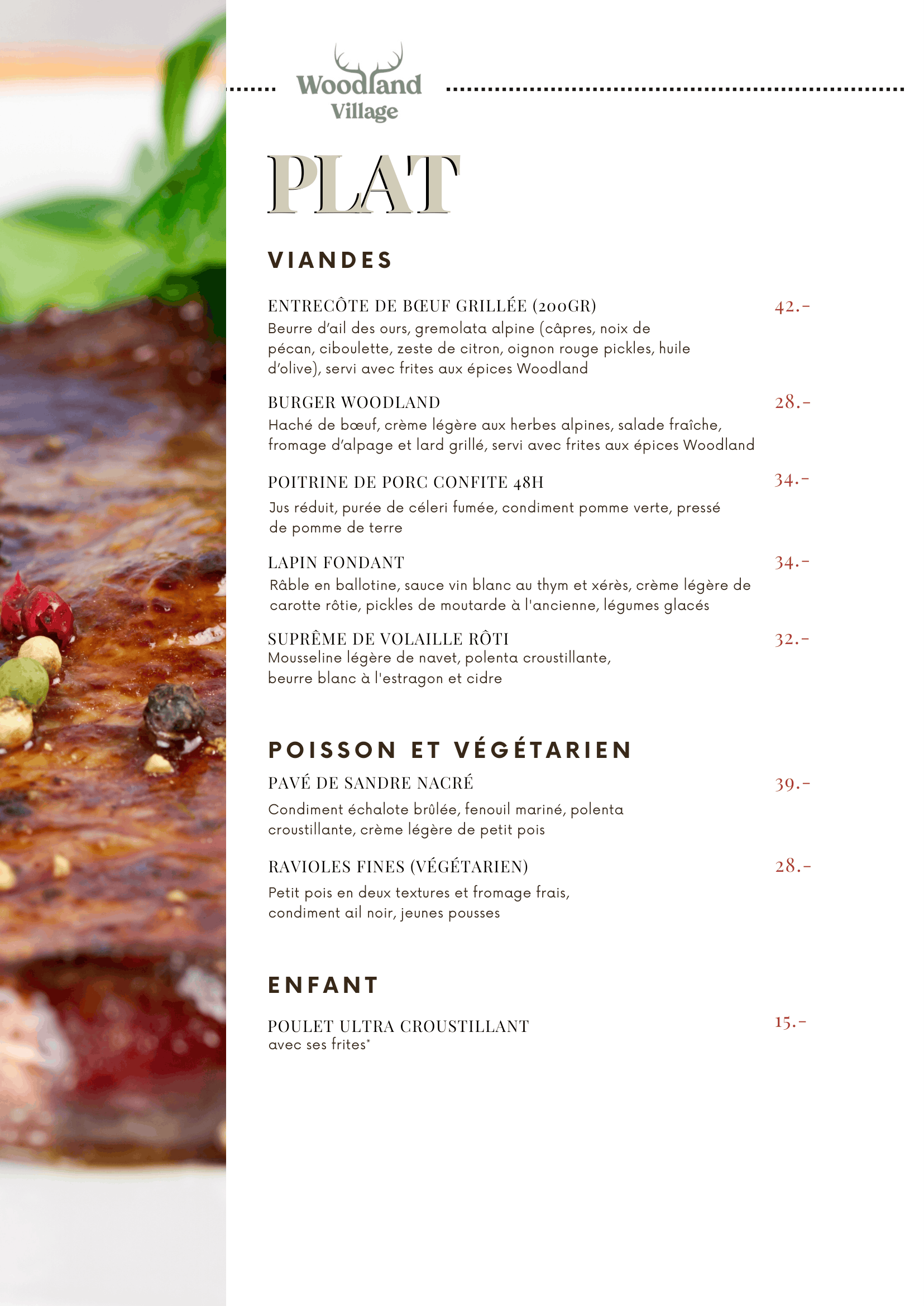Notre carte vous promet des plats faits maison à base d'ingrédients frais et locaux qui raviront vos papilles